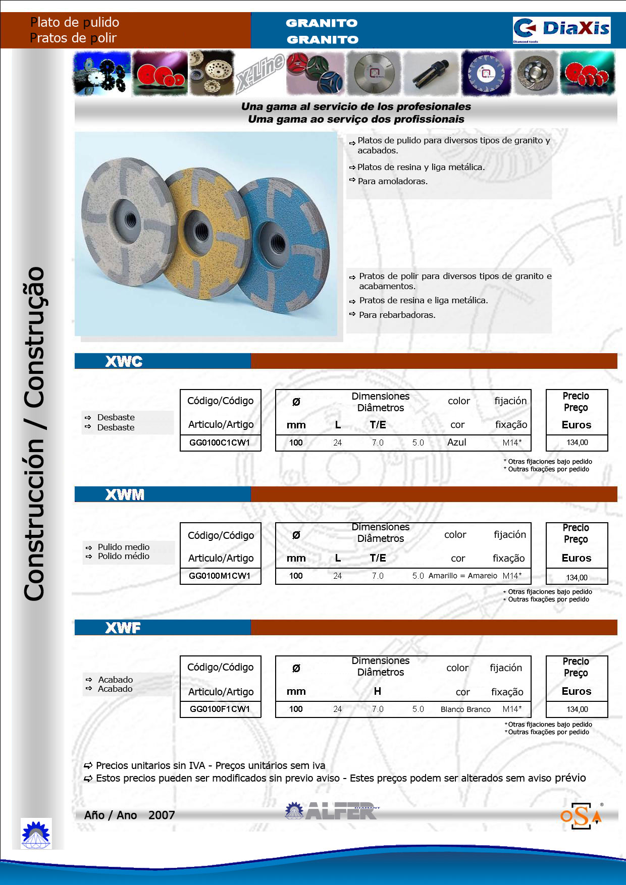 XW: Para el pulido de granito, fabricados con liga metálica y resina, están disponibles en tres tipos: