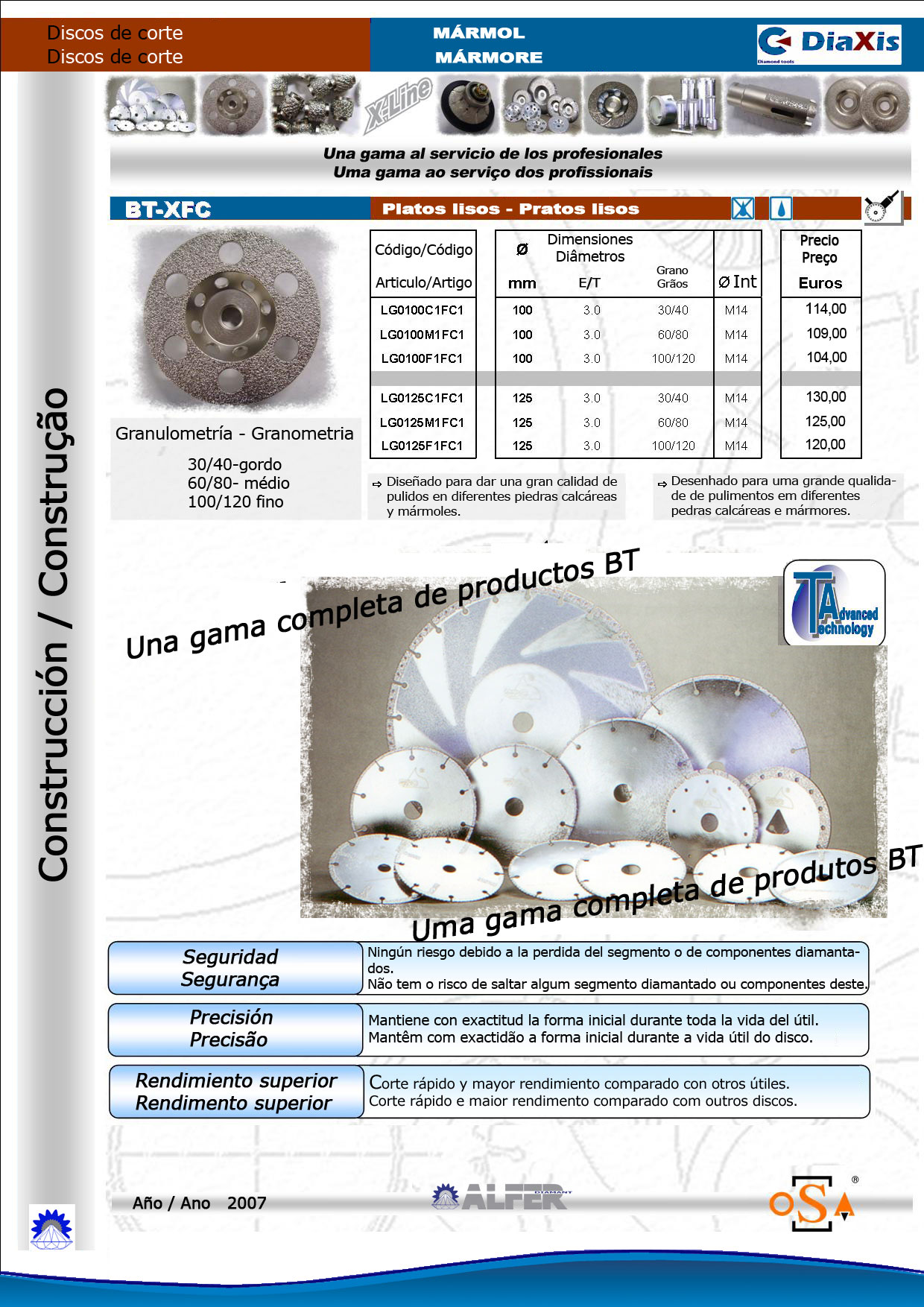 PLATOS DE PULIDO Diseñados para el desbaste y pulido de materiales y fabricado mediante diferentes sistemas para su mayor adaptación al material a pulir, existen en tres gamas BT-XFC: Para el pulido del mármol y otras piedras calcáreas, están disponibles en tres tipos: