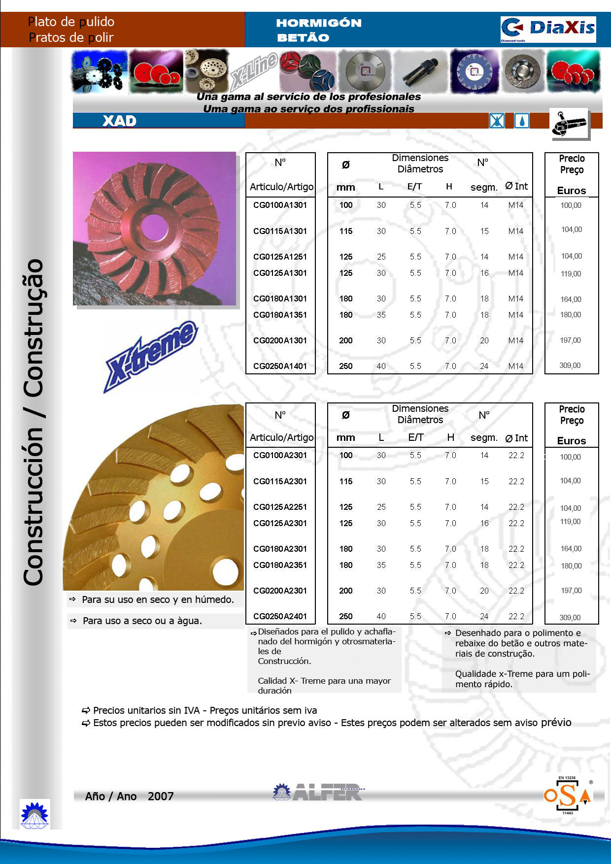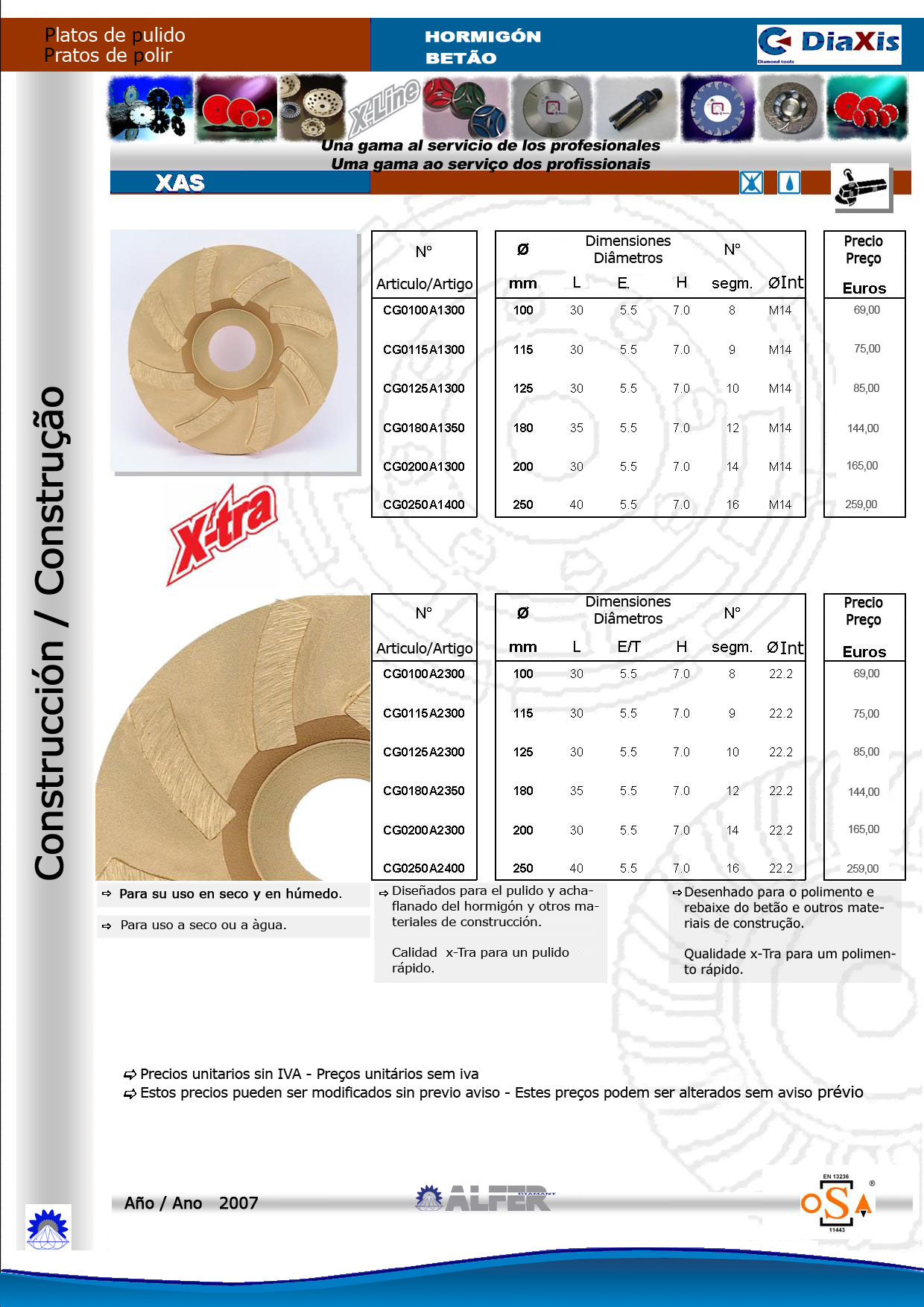 XA: Para el pulido de hormigón y otros prefabricados, están disponibles en dos tipos: